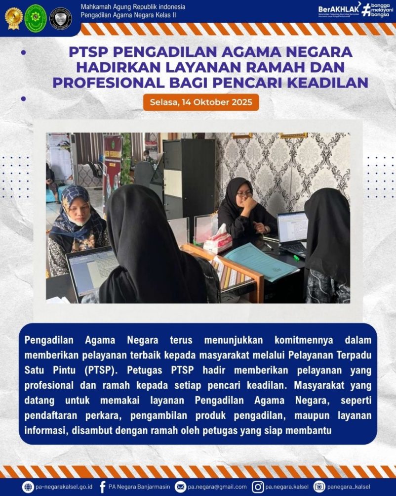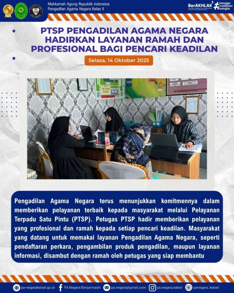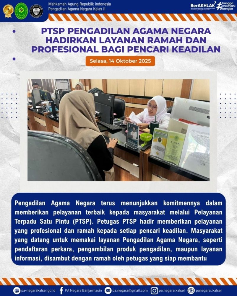 PTSP Pengadilan Agama Negara Hadirkan Layanan Ramah dan Profesional bagi Pencari Keadilan