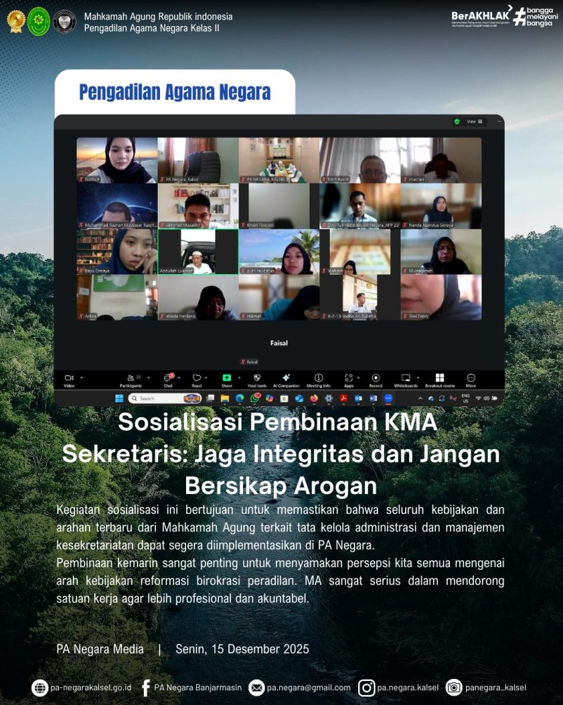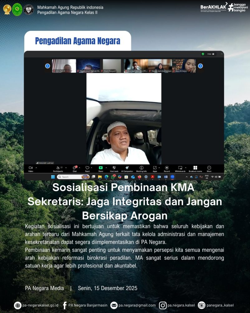 Sekretaris Pengadilan Agama Negara Hadiri Sosialisasi Analisis Jabatan dan Analisis Beban Kerja