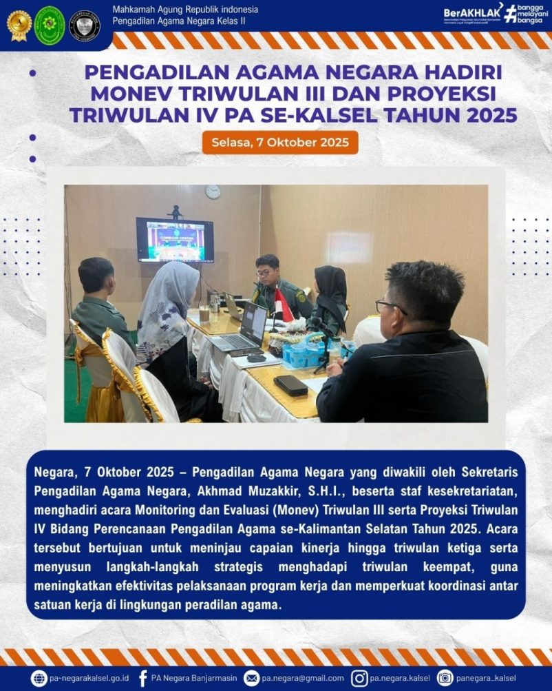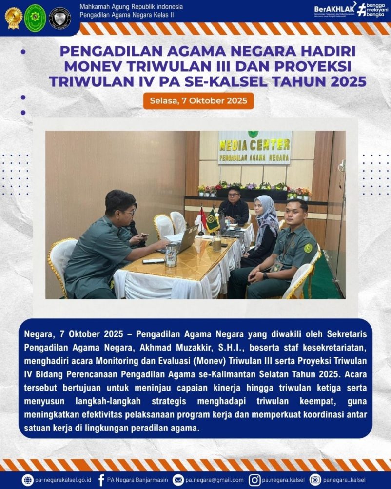 Hadiri Monev Triwulan III dan Proyeksi Triwulan IV PA se-Kalsel Tahun 2025