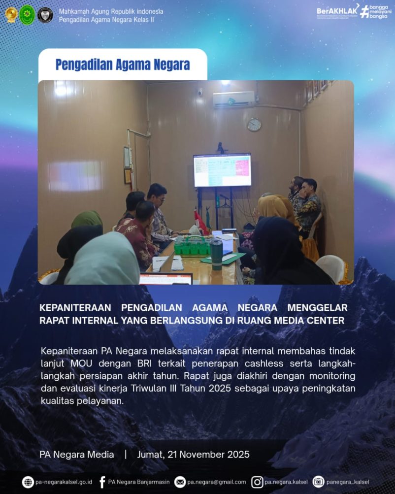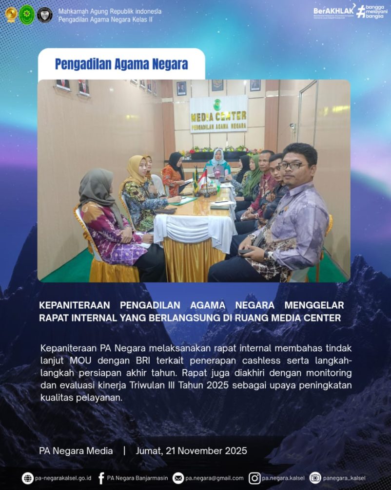 Kepaniteraan Pengadilan Agama Negara Menggelar Rapat Internal Yang Berlangsung di Ruang Media Center