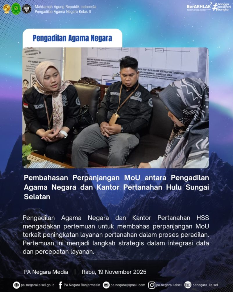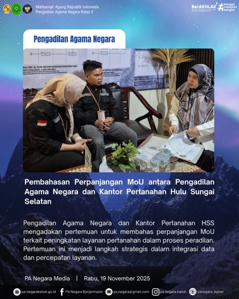 Menggelar pertemuan penting untuk membahas Perpanjangan Memorandum of Understanding (MoU) terkait peningkatan layanan pertanahan dalam proses peradilan.