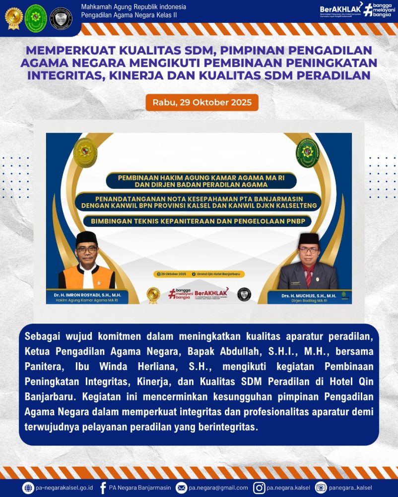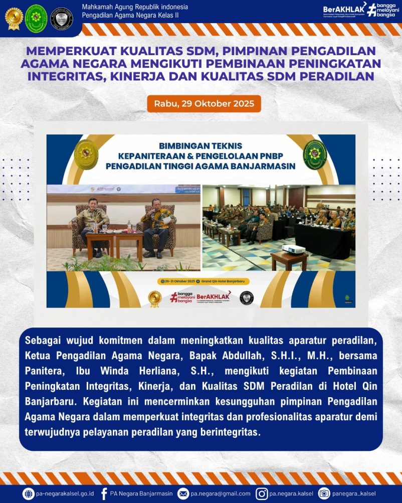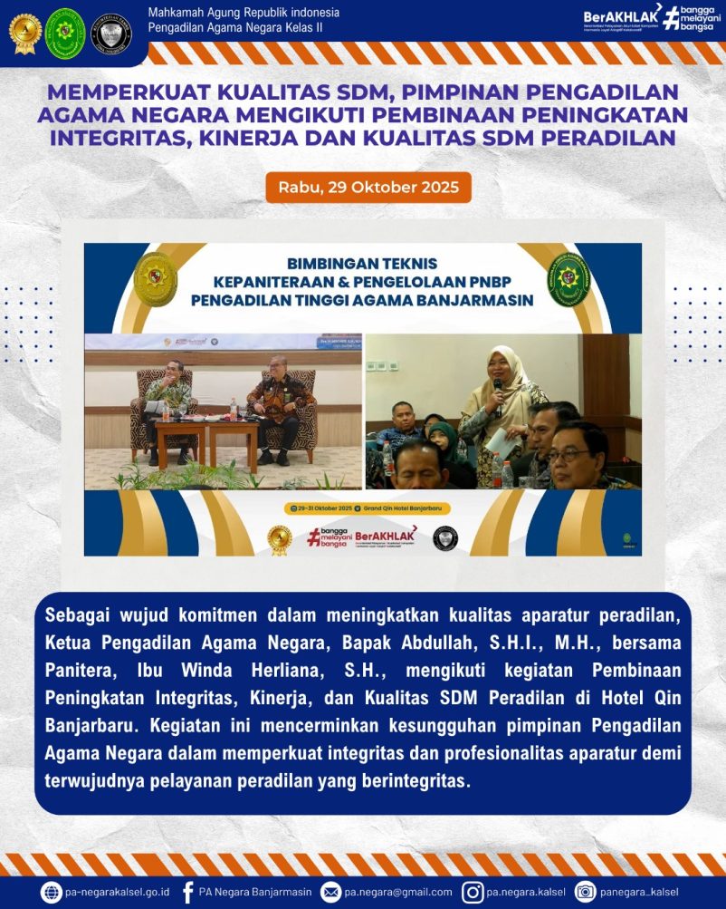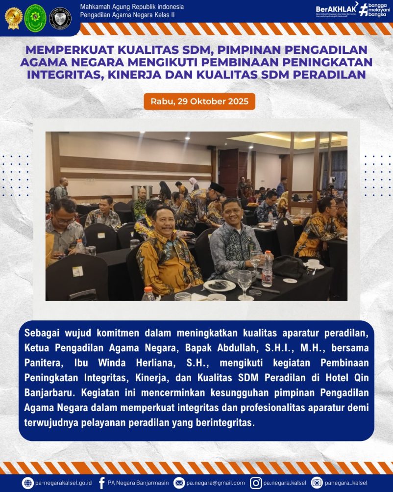 Mengikuti Kegiatan Pembinaan Peningkatan Integritas, Kinerja, dan Kualitas SDM Peradilan yang dilaksanakan di Hotel Qin Banjarbaru