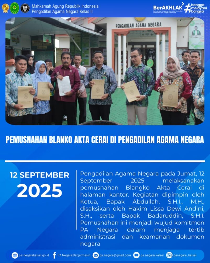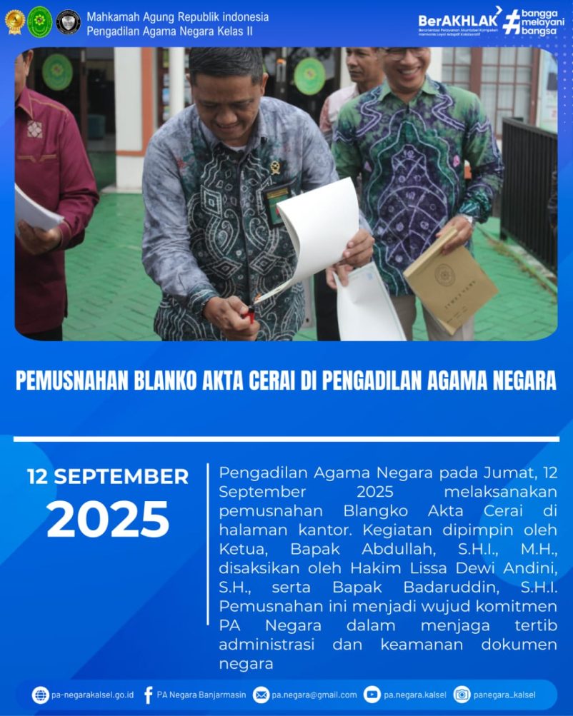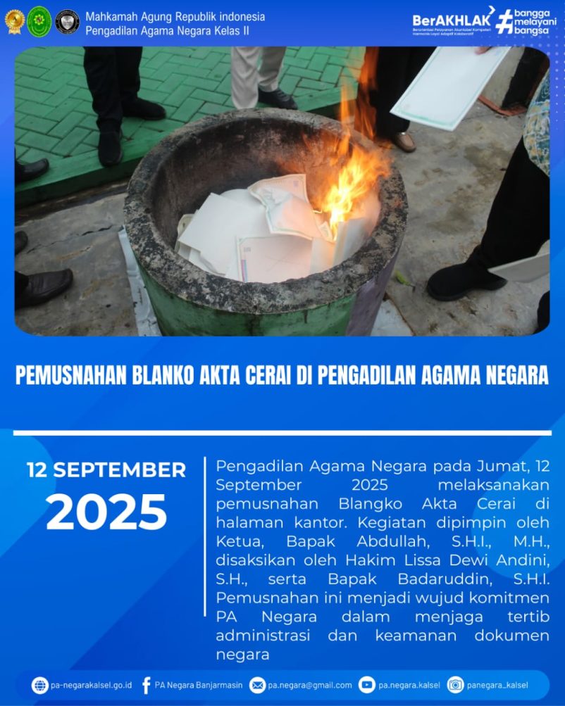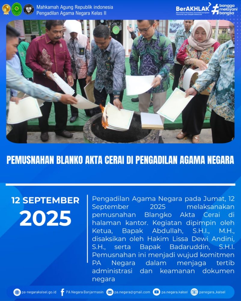 Pemusnahan Blanko Akta Cerai di Pengadilan Agama Negara