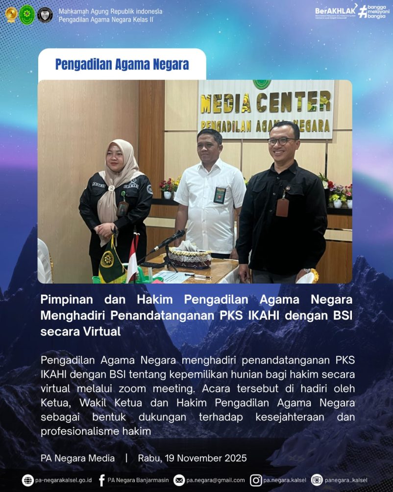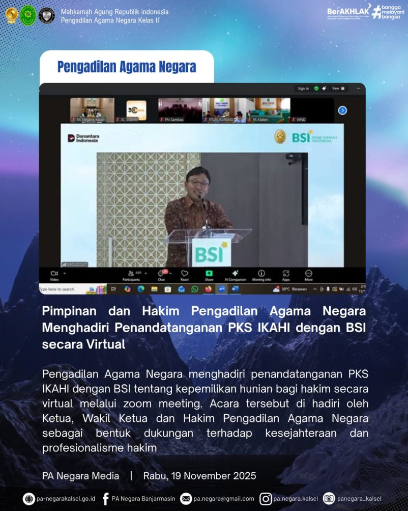 Penandatanganan Perjanjian Kerja Sama (PKS) antara Ikatan Hakim Indonesia (IKAHI) dan Bank Syariah Indonesia (BSI)