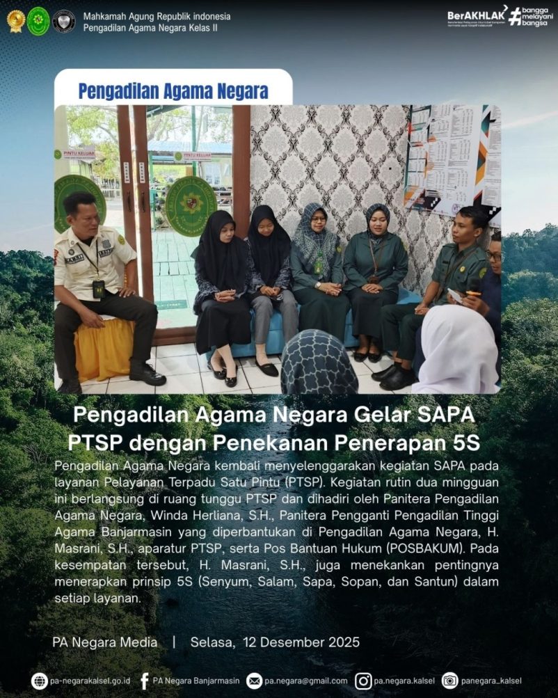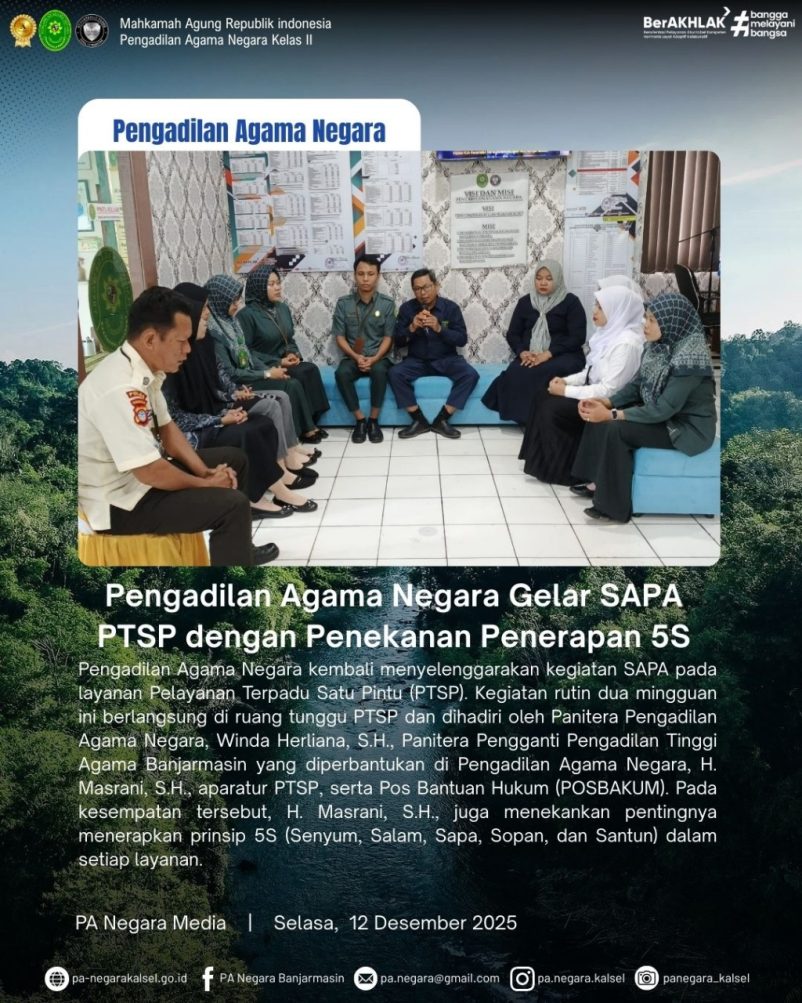 Pengadilan Agama Negara Gelar SAPA PTSP dengan Penekanan Penerapan 5S