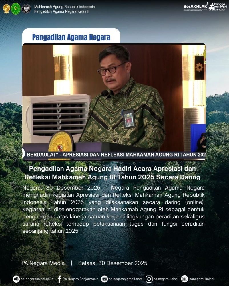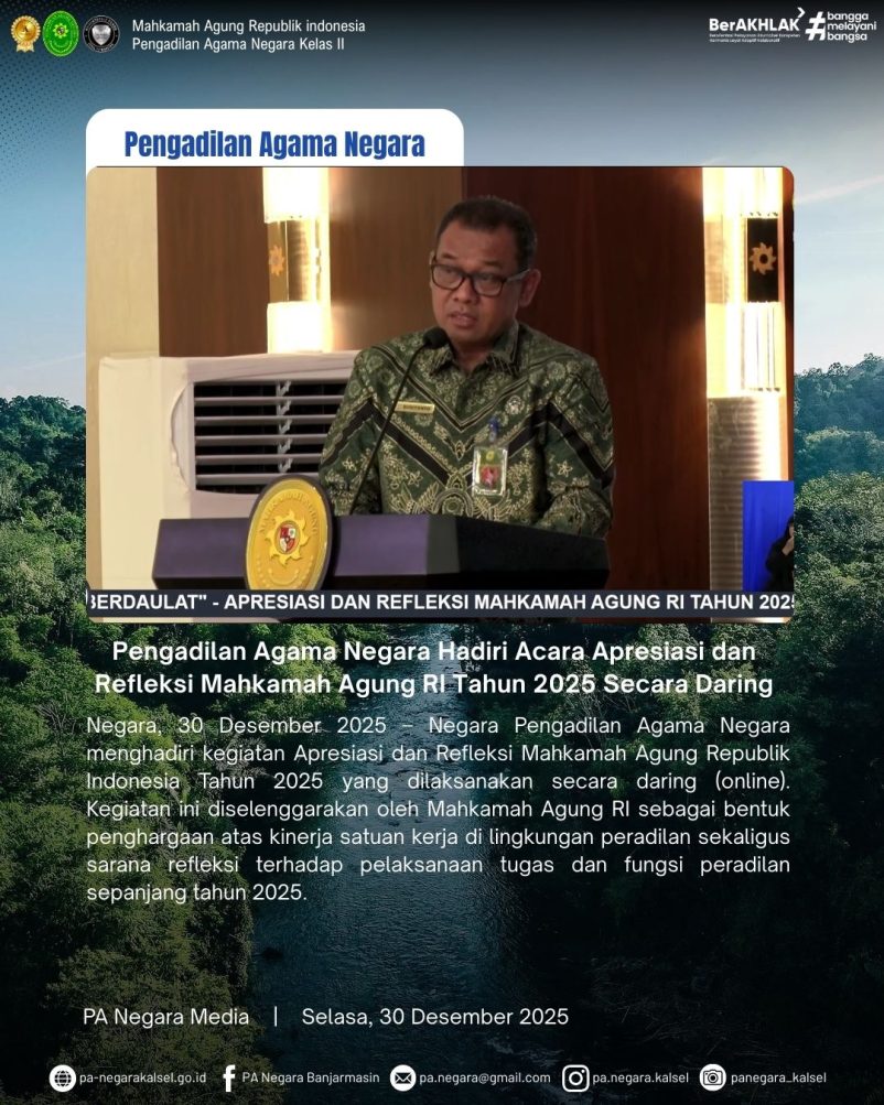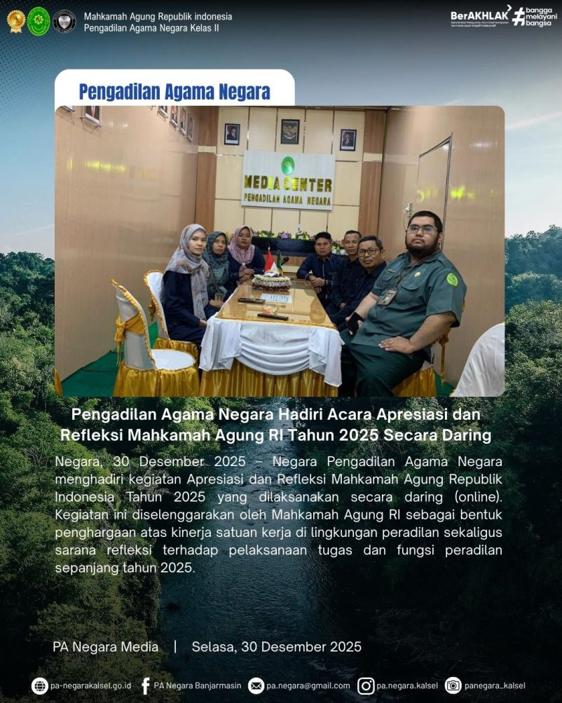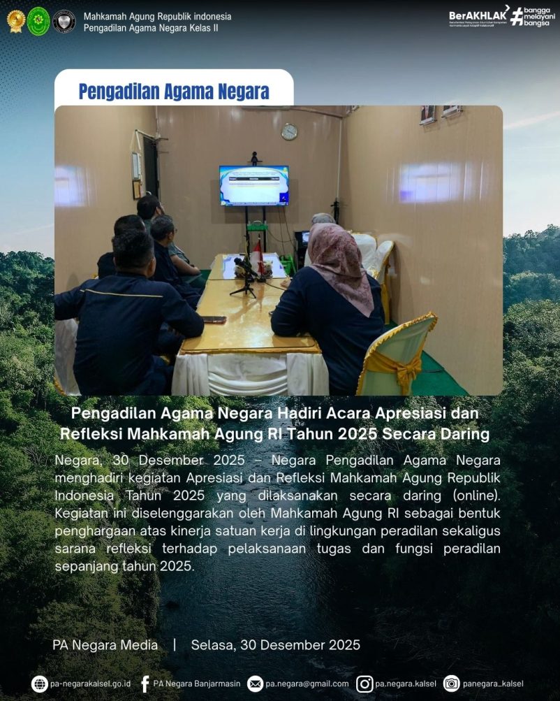 Pengadilan Agama Negara Hadiri Acara Apresiasi dan Refleksi Mahkamah Agung RI Tahun 2025 Secara Daring
