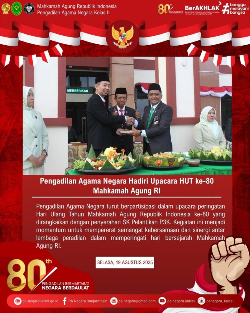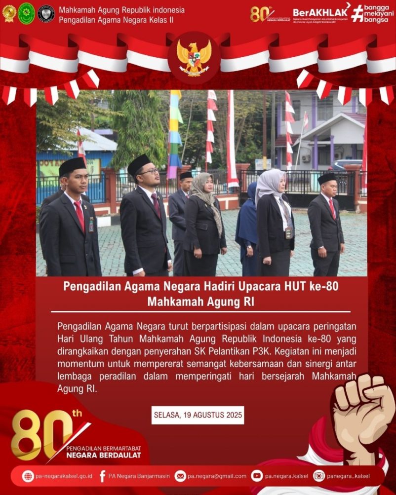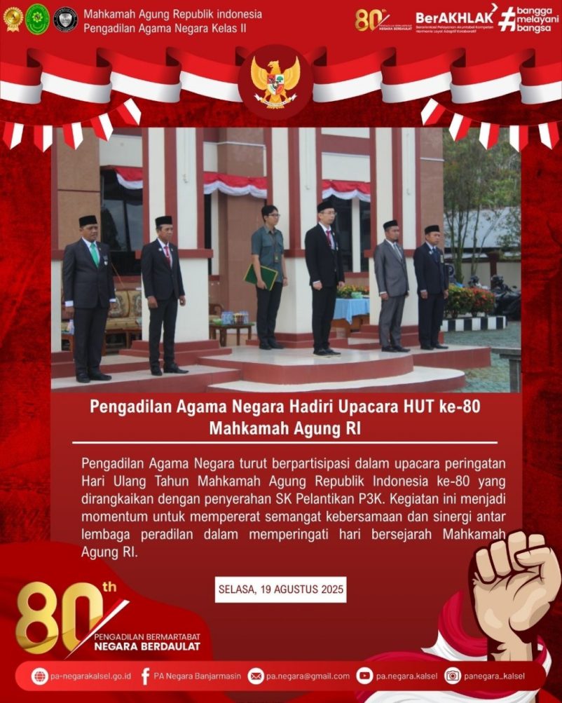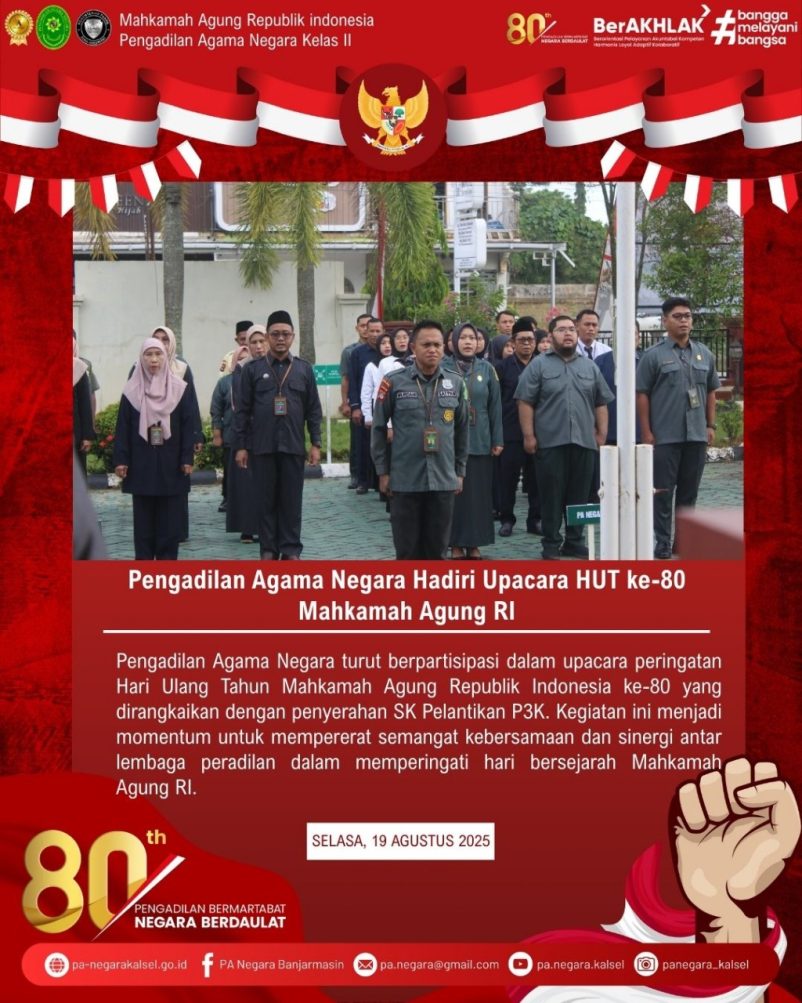 Pengadilan Agama Negara Hadiri Upacara HUT ke-80 Mahkamah Agung RI