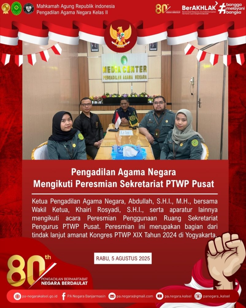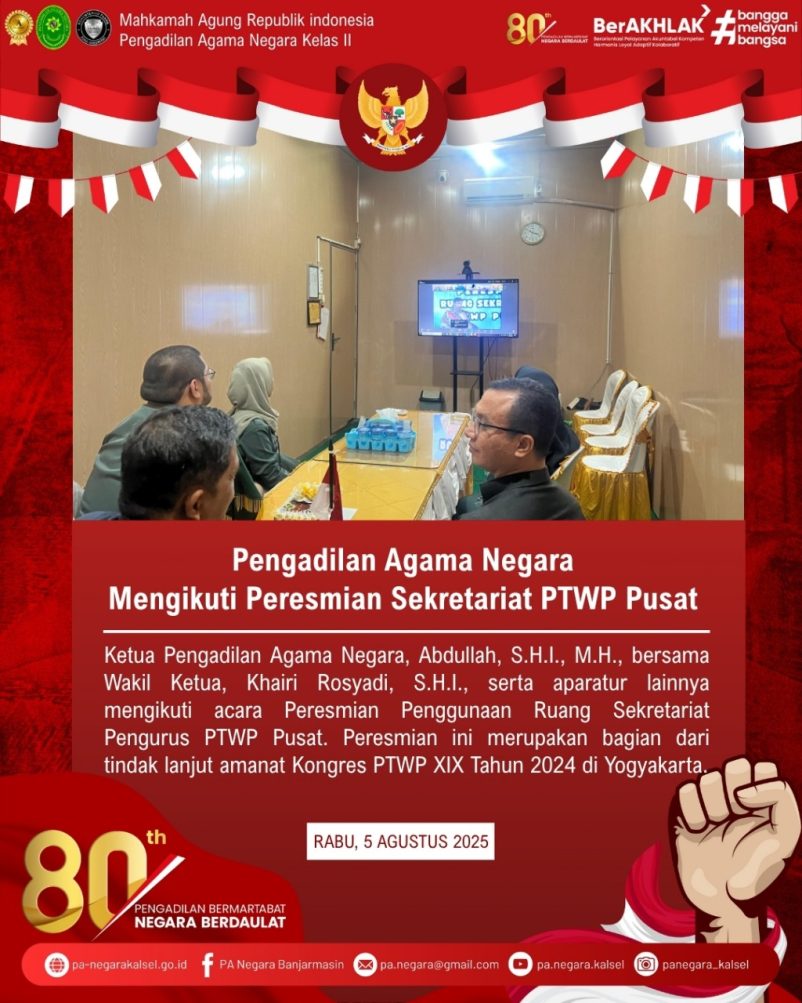 Pengadilan Agama Negara Mengikuti Peresmian Sekretariat PTWP Pusat