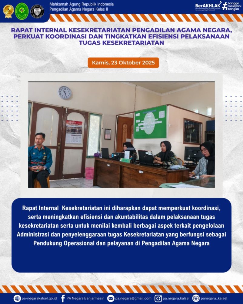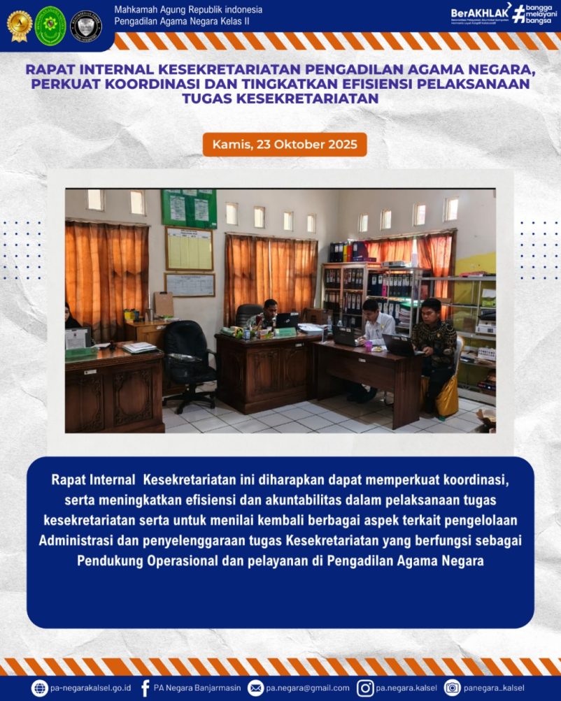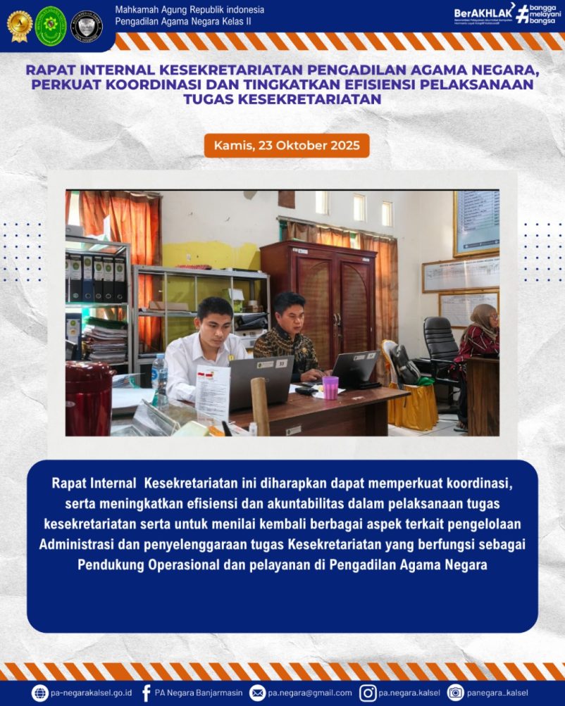 Rapat Internal Kesekretariatan PA Negara, Perkuat Koordinasi dan tingkatkan Efisiensi Pelaksanaan Tugas Kesekretariatan