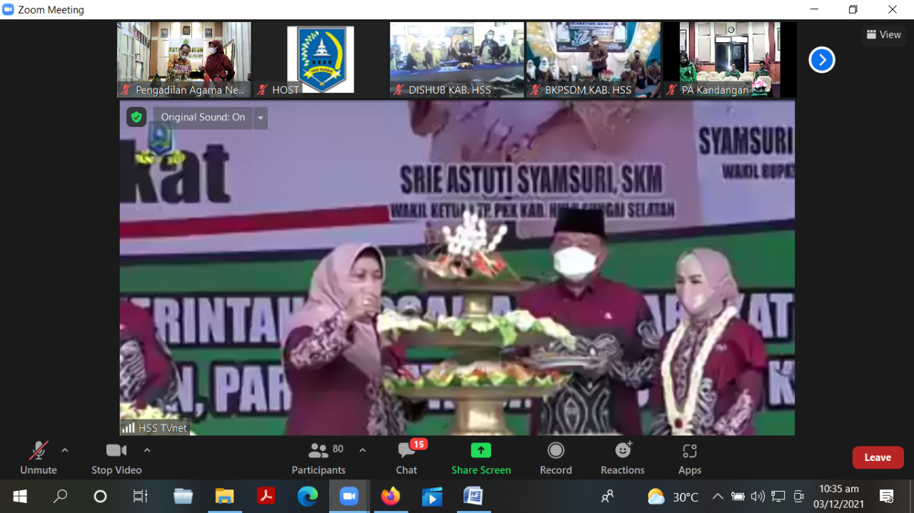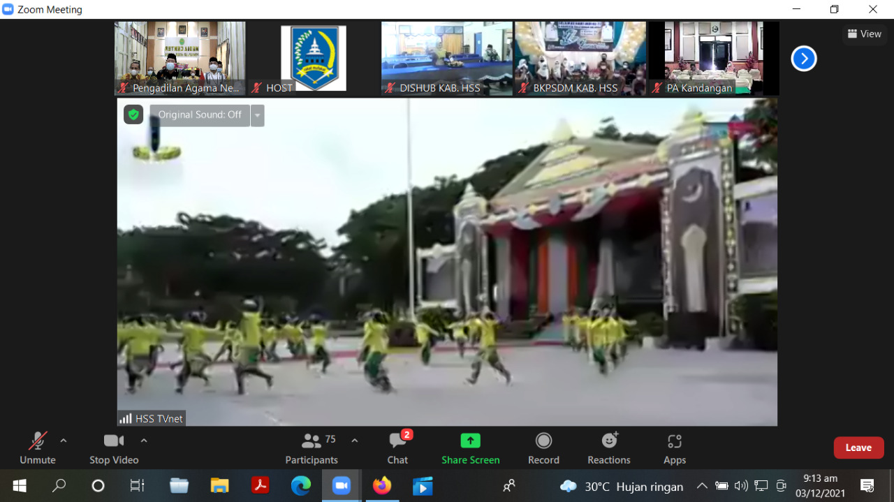 Secara Daring Aparatur Pengadilan Agama Negara mengikuti acara Peringatan Hari Ulang Tahun Kabupaten Hulu Sungai Selatan (HSS) ke 71.