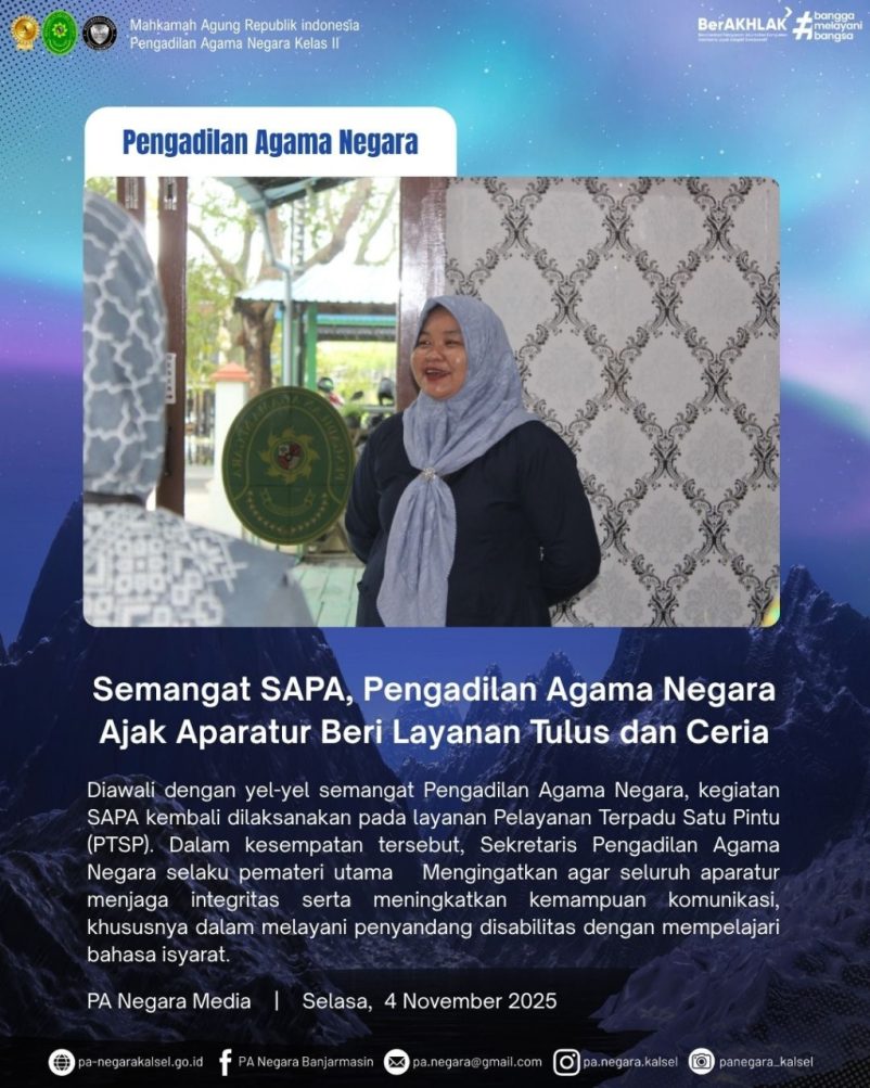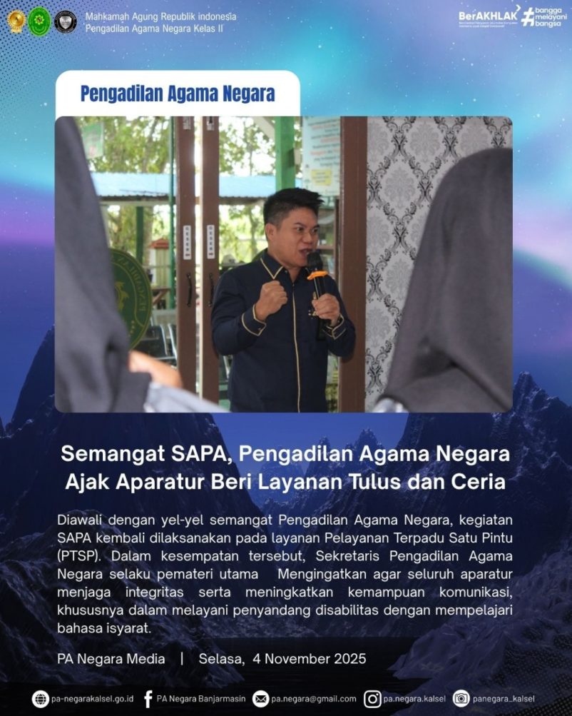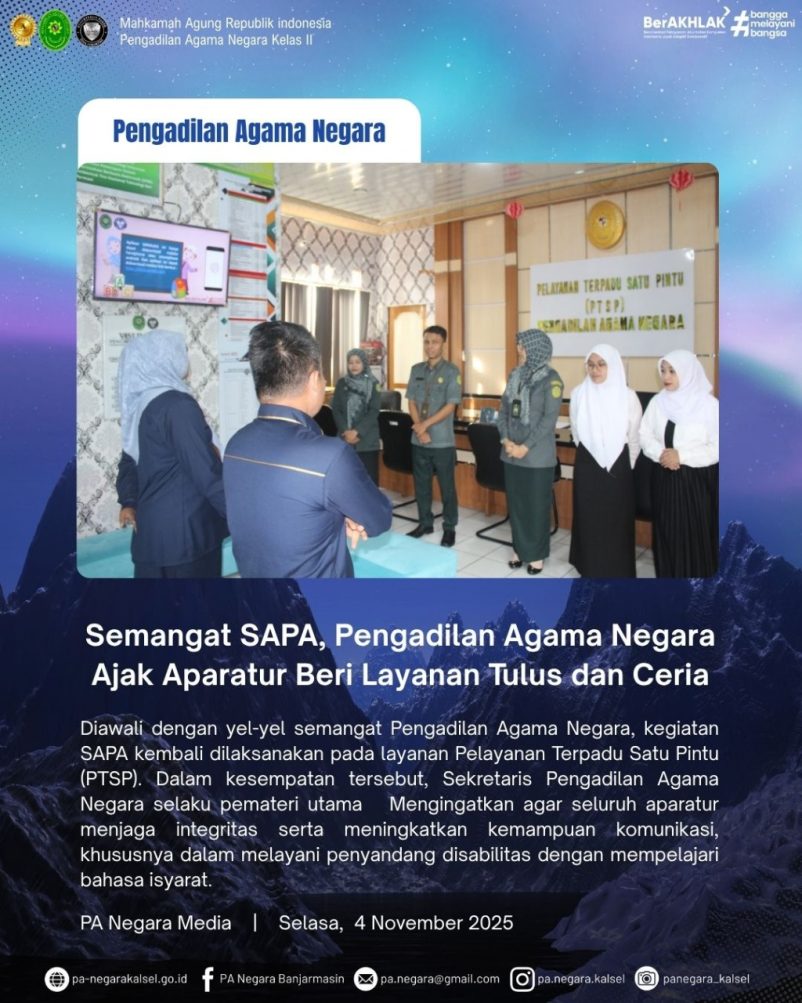 Semangat SAPA, Pengadilan Agama Negara Ajak Aparatur Beri Layanan Tulus dan Ceria