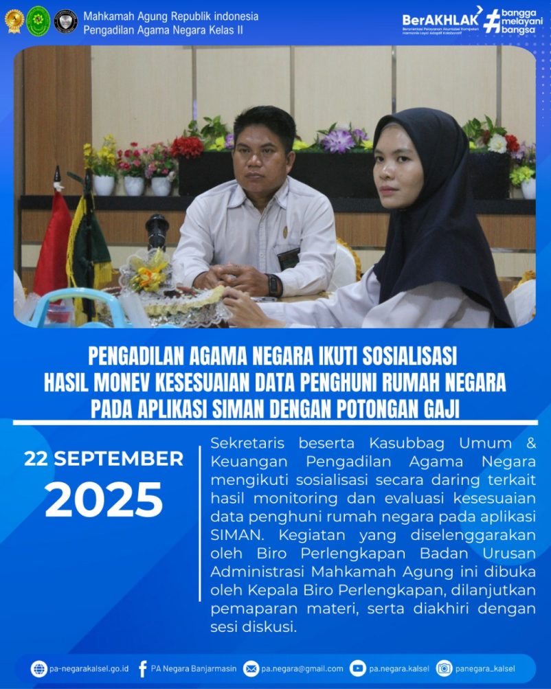Sosialisasi Hasil Monitoring dan Evaluasi Kesesuaian Data Penghuni Rumah Negara pada Aplikasi SIMAN dengan Potongan Gaji