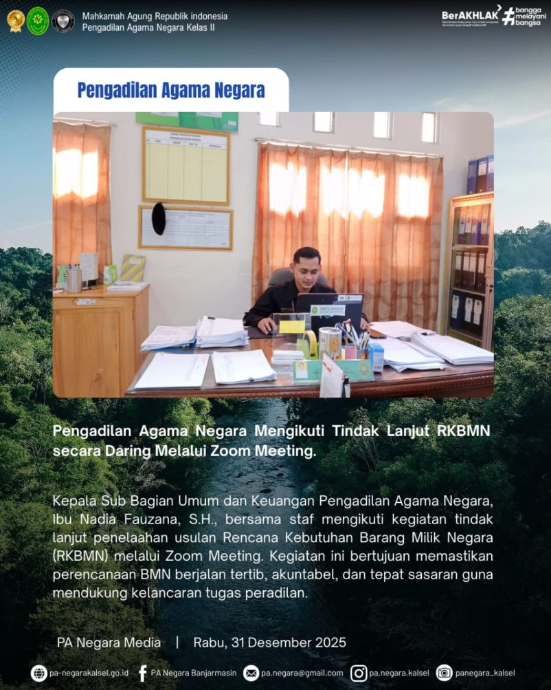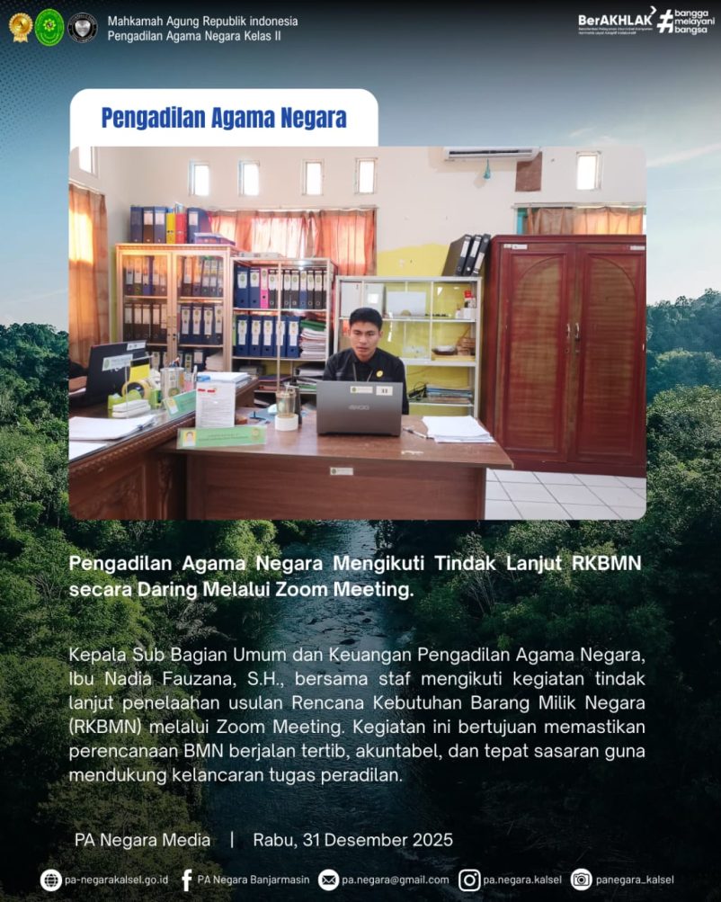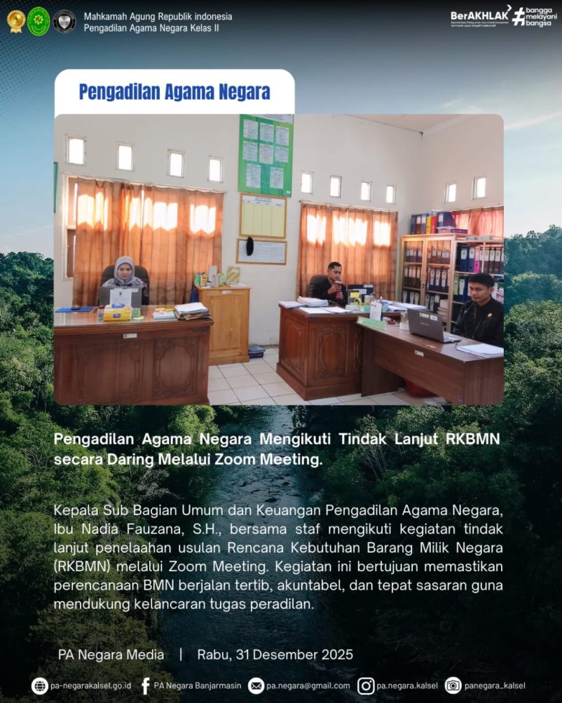 Tindak Lanjut Hasil Penelaahan Usulan Rencana Kebutuhan Barang Milik Negara (RKBMN) yang dilaksanakan secara daring