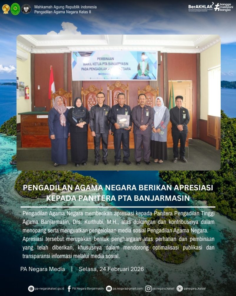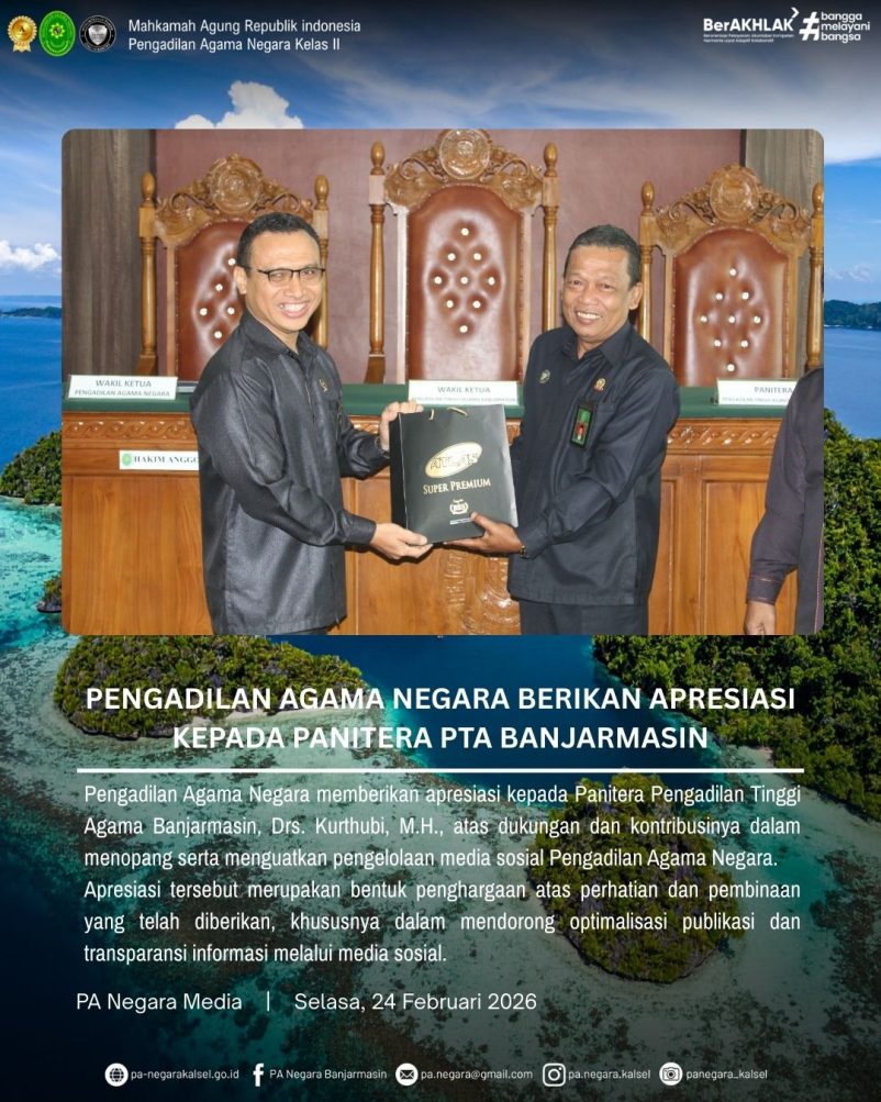 Pengadilan Agama Negara Berikan Apresiasi kepada Panitera PTA Banjarmasin